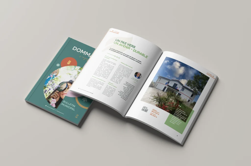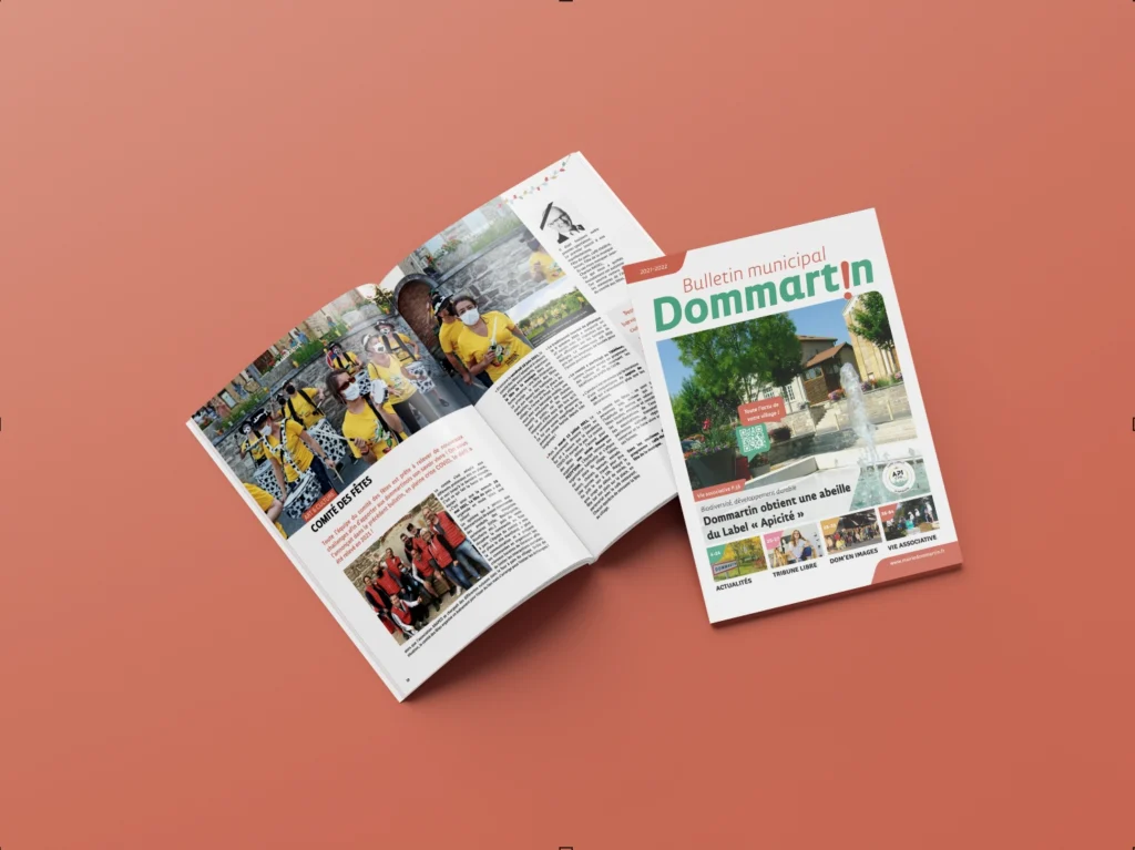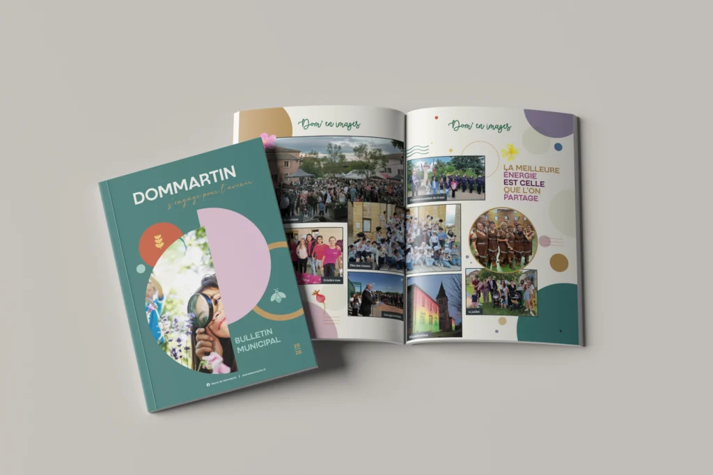 Depuis plusieurs années, j’ai le plaisir d’accompagner la commune de Dommartin, située dans le Nord-Ouest Lyonnais, dans la conception et la réalisation de son journal municipal annuel. Ce projet d’envergure de 72 pages est bien plus qu’un simple support d’information : c’est le reflet de l’âme d’un village où il fait bon vivre, entre dynamisme institutionnel et richesse associative.