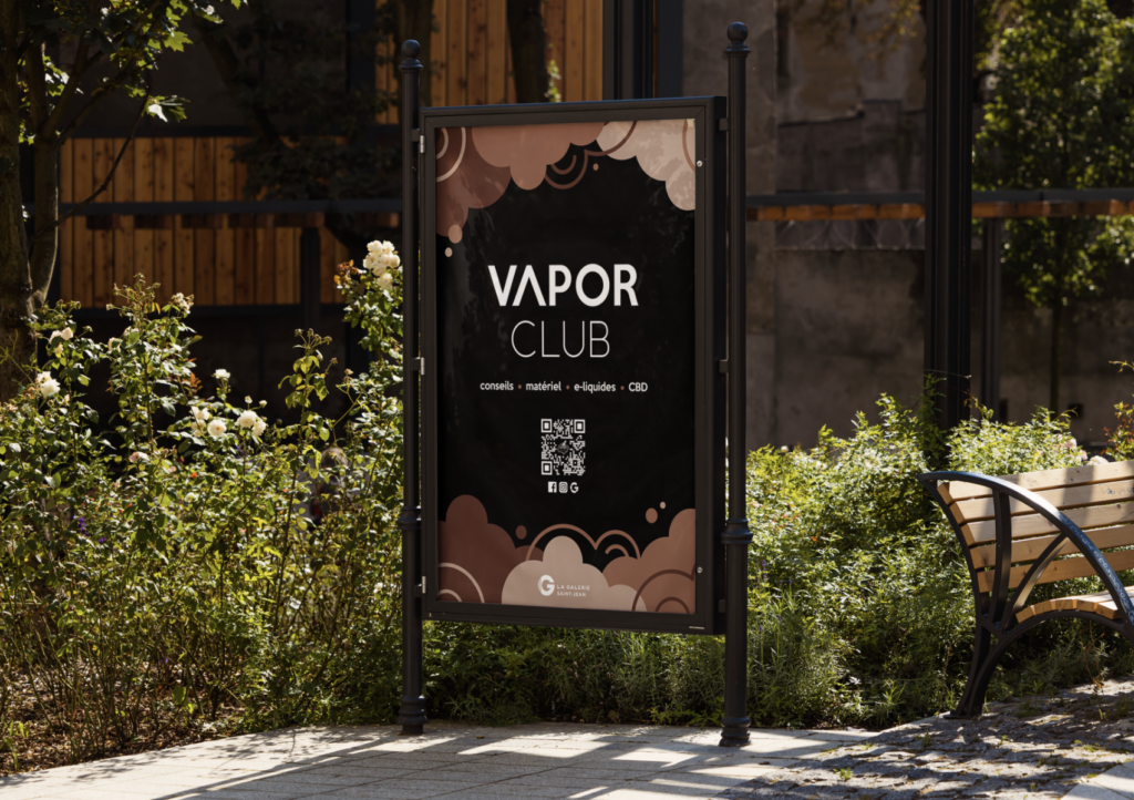 Depuis le lancement de Vapor Club en 2020, j’accompagne cette enseigne spécialisée dans la cigarette électronique, située dans la galerie marchande Saint-Jean au Brézet, à Clermont-Ferrand. Ce projet a évolué d’un simple corner vers une boutique à part entière, avec pour ambition de transformer l’image classique des magasins de vape en un lieu chaleureux, moderne et accueillant.